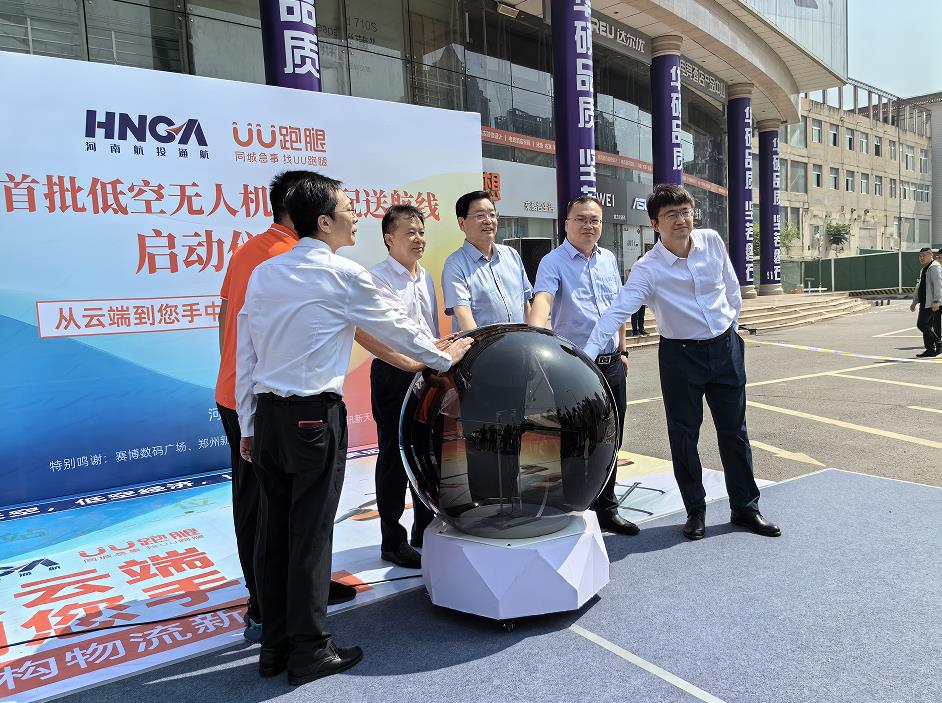 5月18日上午10時(shí)許,一架物流無(wú)人機(jī)從河南科技市場(chǎng)數(shù)碼港垂直升空,12分鐘后按既定路線平穩(wěn)降落在新天地通訊大廈,河南首條低空無(wú)人機(jī)物流配送航線成功首飛。
