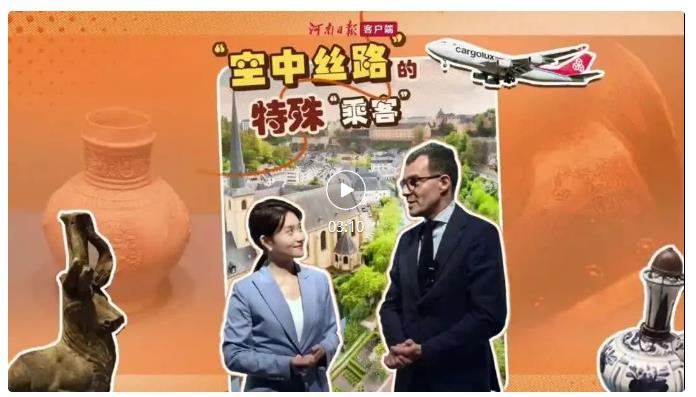 2022年11月,在首屆鄭州—盧森堡“空中絲綢之路”國際合作論壇上,河南省文物局與盧森堡國家考古、歷史與藝術博物館簽署合作協(xié)議,雙方將持續(xù)在文物展覽、博物館管理及其他文化遺產領域開展合作。2023年12月,豫盧間直飛客運航線開通,鄭盧“空中絲路”實現(xiàn)人享其行,人員往來便利化水平有效提升。從盧森堡出發(fā),貨物直達、人員直飛,河南與盧森堡之間的交流越來越便捷。